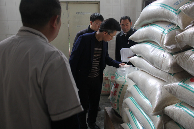 肖月强一行先后深入学校食堂后厨操作间、仓库间、配菜间、主副食加工线、食品留样柜等区域,仔细查看米、面、油、肉、干杂、调料等有无过期变质食品;认真核对食品原材料的厂名厂址、生产日期、保质日期、验收记录、进货台账等,核查是否存在“三无”产品现象;并详细询问食堂负责人食品安全情况,对发现的不足问题及时提出了整改意见。