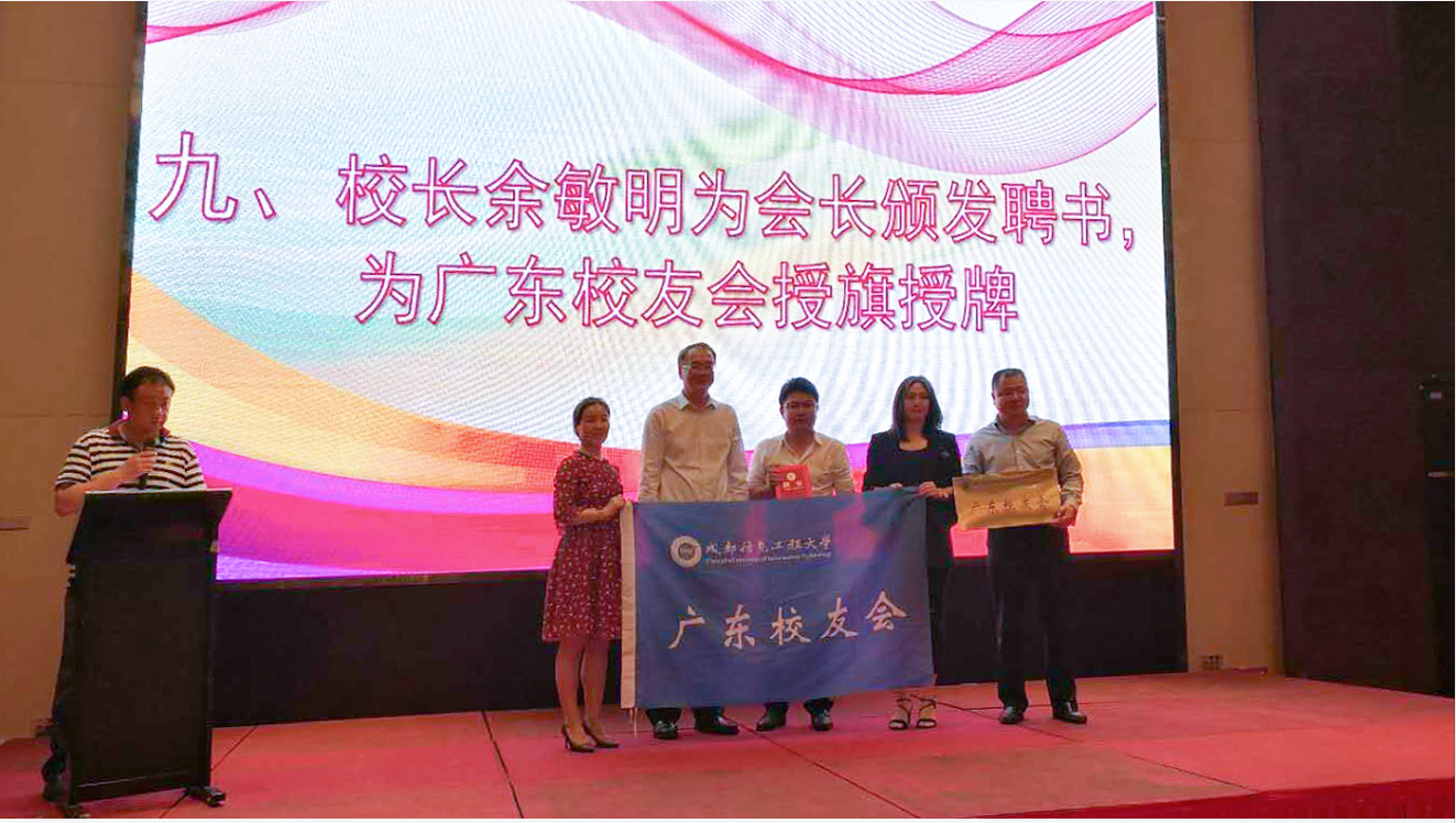 大会审议并通过了广东校友会章程,选举产生了广东校友会新一届理事会成员及负责人。学校参会校领导为广东校友会理事会负责人颁发了聘书,余敏明为广东校友会授牌授旗。