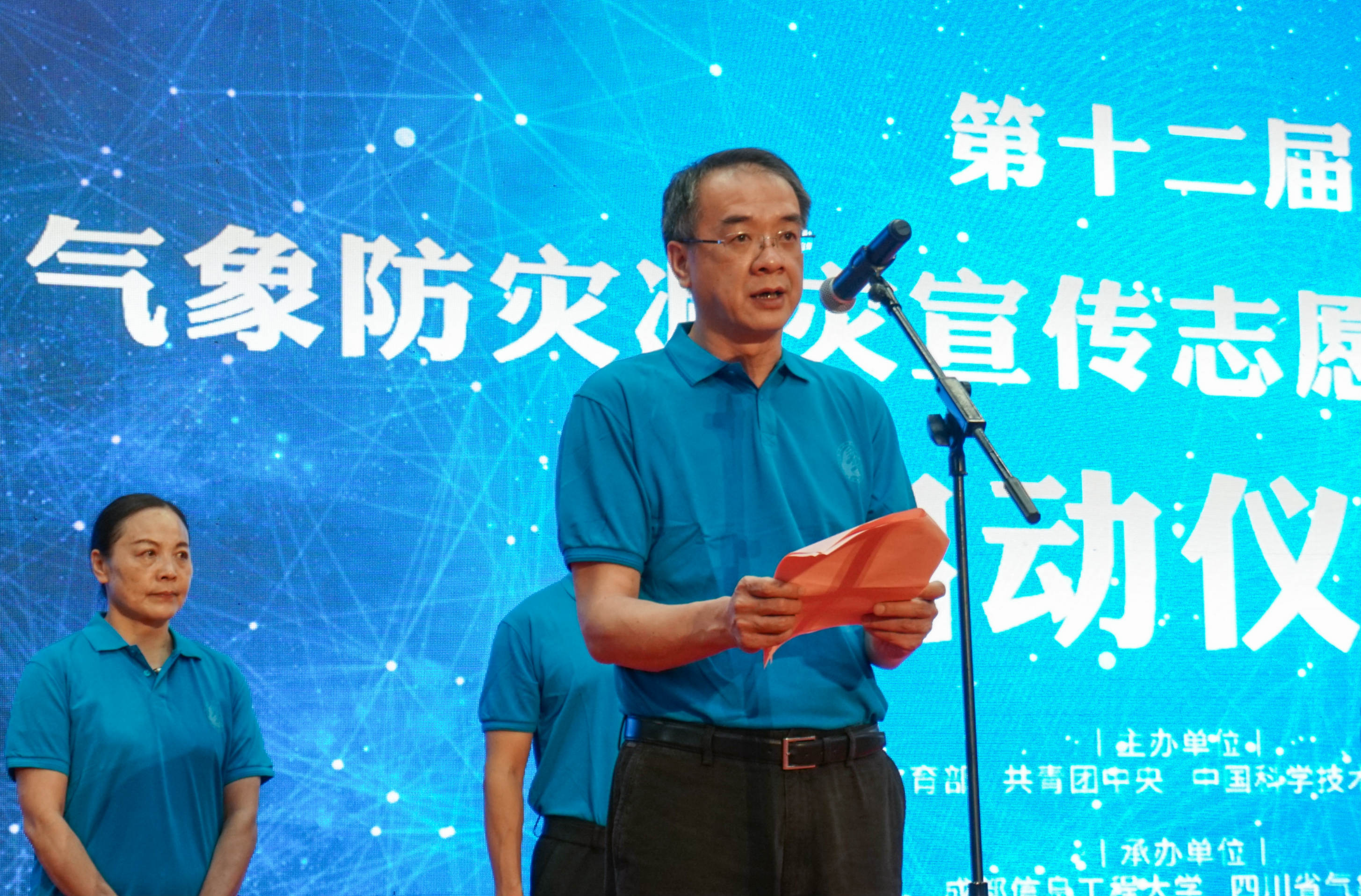 【本网讯】6月29日,由中国气象局、教育部、共青团中央、中国科学技术协会和中国气象学会主办,15vip太阳集团官网、四川省气象局承办,中国气象局公共气象服务中心、中国气象局宣传与科普中心支持,各省市气象局、气象学会、教育厅、团委、科协,南京信息工程大学等15所高校协办的第十二届“气象防灾减灾宣传志愿者中国行”活动启动仪式在学校航空港校区体育馆举行。