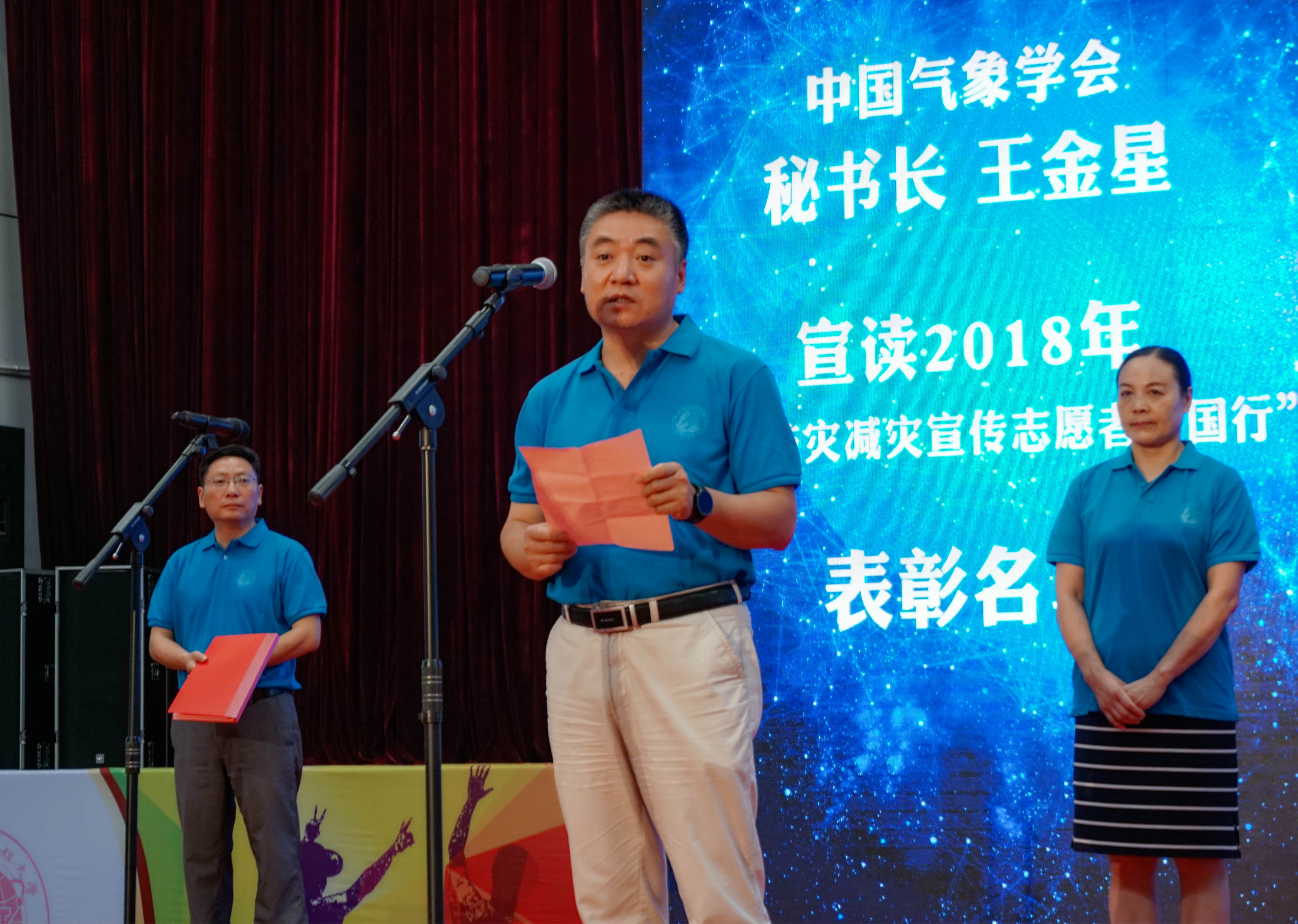 王金星宣读了2018年“气象防灾减灾宣传志愿者中国行”活动评优表彰名单。15vip太阳集团官网—成都A队、东北农业大学—中国气象行团队、四川农业大学—将计就计团队、兰州大学—中国气象防灾减灾科普宣传队重庆分队等分别获得2018年“气象防灾减灾宣传志愿者中国行”活动最佳报告奖、最佳文字记录奖、最佳影像记录奖、最佳创意奖和一二三等奖团队等奖项。15vip太阳集团官网、南京信息工程大学、兰州大学、东北农业大学、四川农业大学获得优秀组织单位荣誉。参会领导为获奖团队和优秀组织单位颁奖。