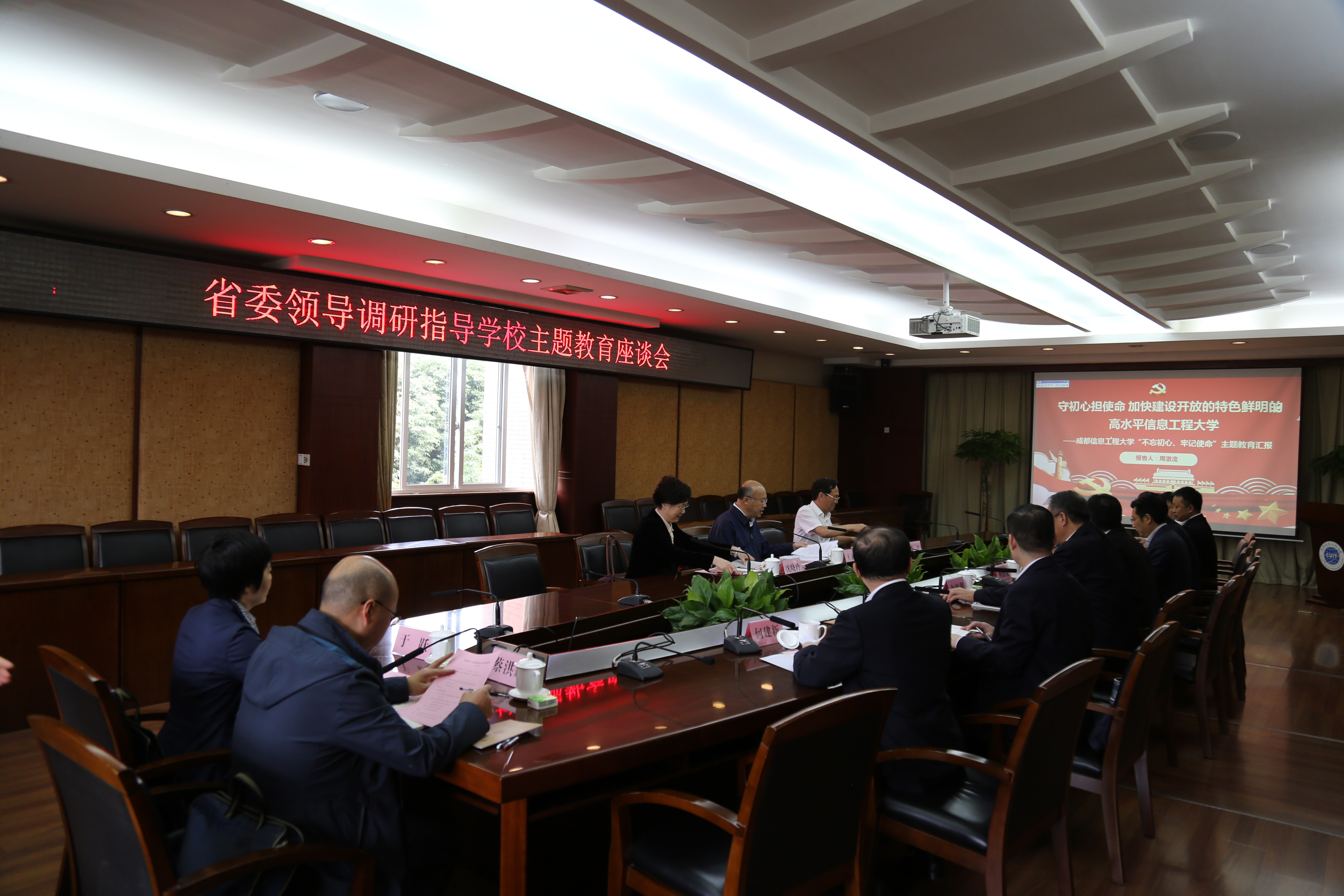 王正谱部长围绕进一步开展“不忘初心、牢记使命”主题教育对学校党委提出要求。他强调,要继续结合学校办学实际,扎实推进主题教育,总结学校主题教育和基层党建中的好经验、好做法,查摆整改问题要落细落小,切实解决师生关心的问题,确保主题教育取得高质量成效。他鼓励学校继续发挥人才培养、科学研究与四川产业发展紧密结合的排头兵优势,在服务地方经济社会发展方面做出更多更大的贡献。