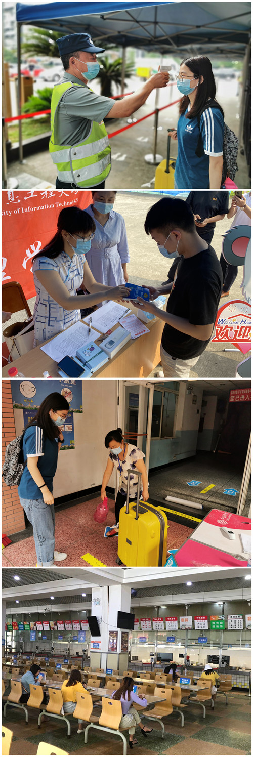 返校当日,学校党委书记周激流、校长余敏明分别带队赴航空港和龙泉校区,走访检查了两个校区正大门入校检测点、学院报到点和实验室、图书馆、学生宿舍、辅导员值班室、学生食堂、校园超市等重要场所,指导学生返校报到各项工作,并慰问了坚守在返校复课工作一线的教职工。