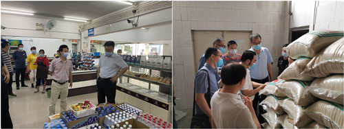 校领导在校门口仔细查看了临时休息区、防疫隔离观察点、学生返校登记点等工作准备和运转情况;在学院报到点与返校同学亲切交流、温馨合影留念,关心询问他们的返校路途情况、学习、生活和就业等情况;在相关学院听取了2020届毕业生返校工作方案汇报,查看了实验室操作防护情况,询问了实验室疫情期间运行管理要求,了解了实验室学生的实验操作、毕业准备和就业情况。在学生公寓,学校领导嘱咐工作人员要关心和爱护好返校同学,在严格防疫管理的同时,为返校学生做好生活和学习上的贴心服务。在校园超市和学生食堂,学校领导仔细查看了超市食品的生产日期、学生食堂备料间物资的采购和卫生情况,并要求工作人员要坚持防疫工作不松懈,做好监督抽检工作,全力保障食品卫生安全。