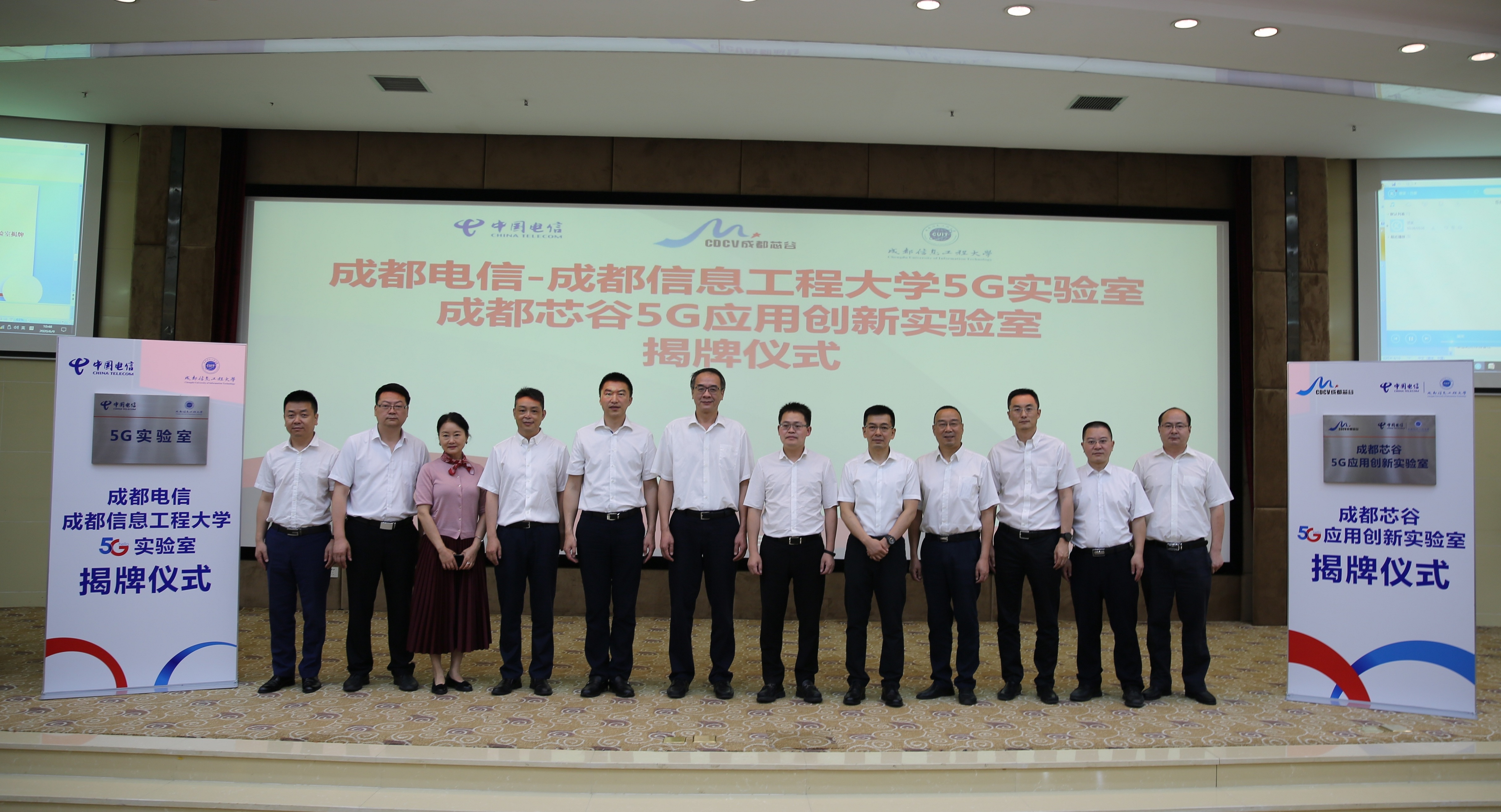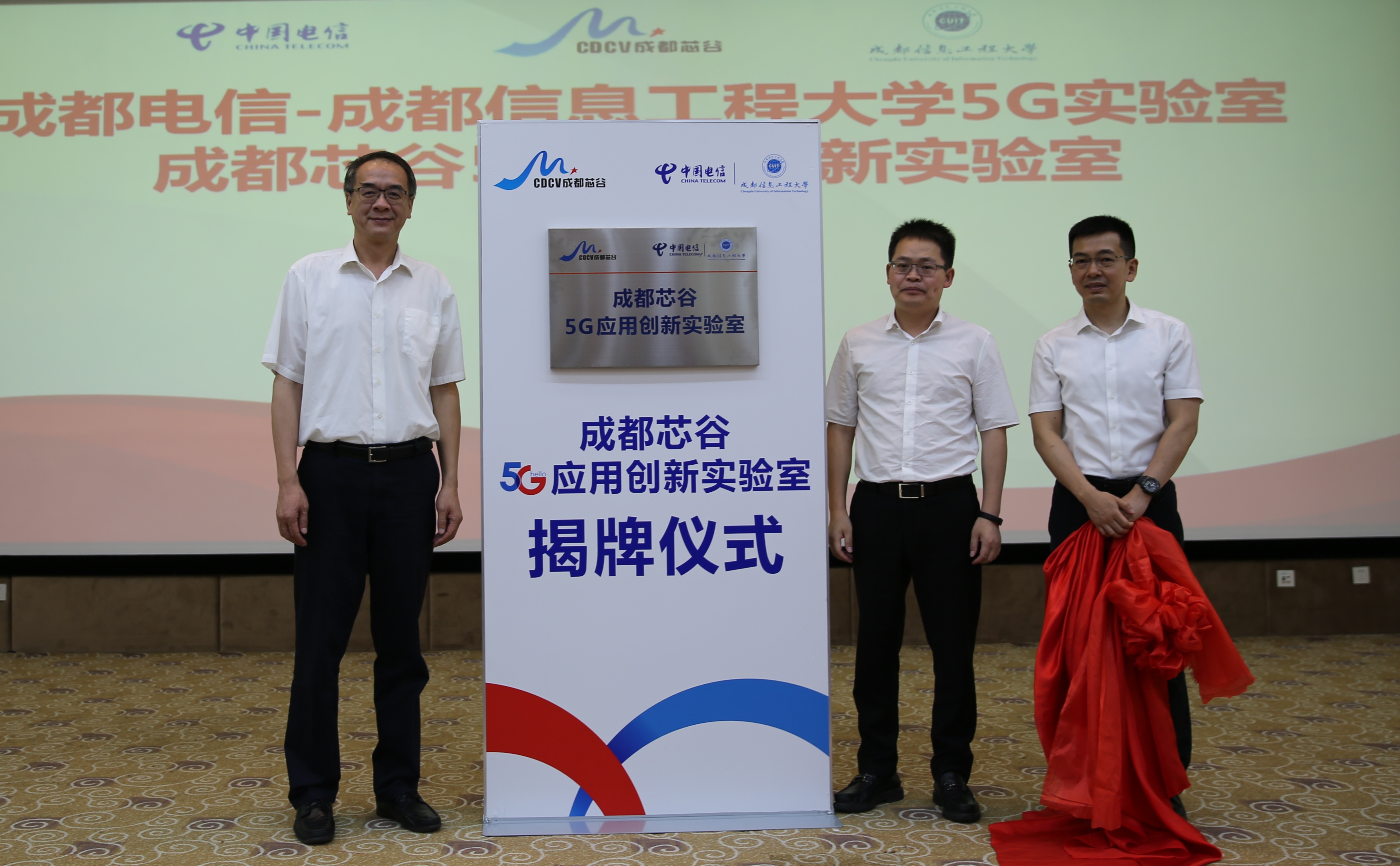 余敏明、杨洋为“成都电信-15vip太阳集团官网5G实验室”揭牌。韩超、余敏明、杨洋为“成都芯谷5G应用创新实验室”揭牌。