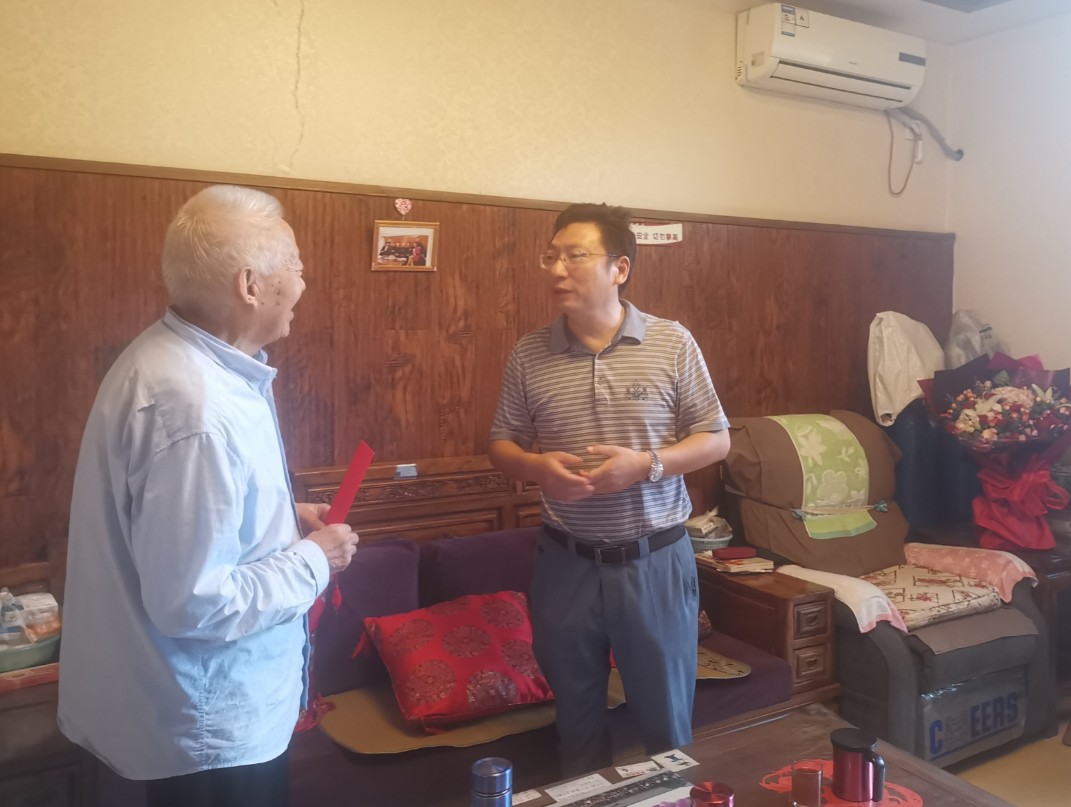 学校党委副书记马洪江走访慰问曾参加抗日战争的离退休老同志许荣耀,感谢老人为中华民族独立和解放以及学校发展建设作出的贡献,关切地询问了老人的身体和健康状况,希望老同志保重身体,健康长寿!并提前祝老同志教师快乐!许荣耀介绍了自己的生活身体等方面的情况,感谢学校的一直以来关心和照顾。