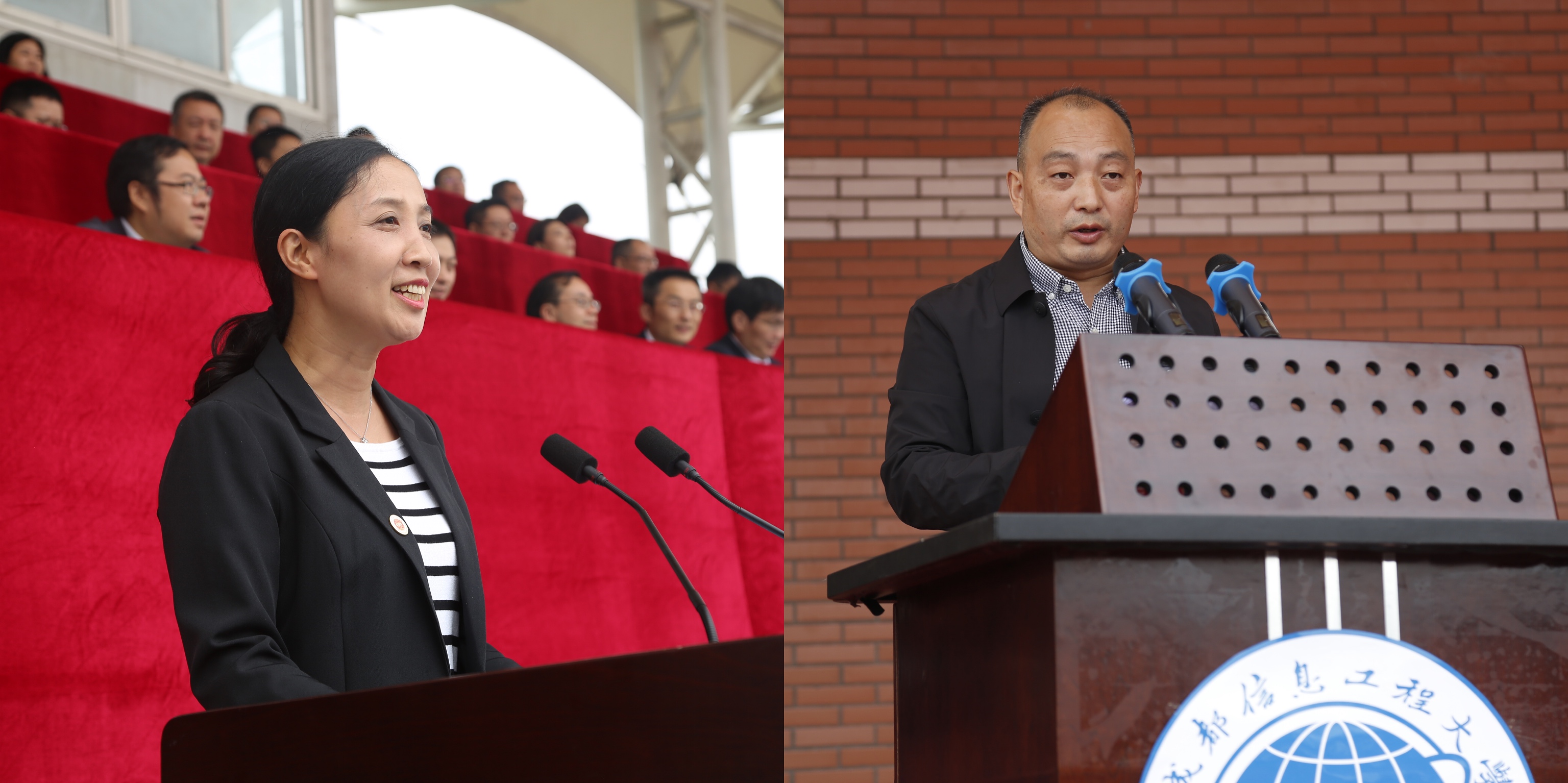 大气科学学院研究生陈贞璇和统计学院经济统计学专业黄程代表全体新同学表示,将传承和弘扬“成于大气,信达天下”的校训精神,牢记“尊师,好学,励志,笃行”的学风,相互鼓励,彼此支持,以才学互通,以勤奋共勉,开创美好的未来。