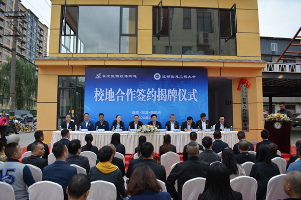 【本网讯】10月14日,太阳集团与双流区西航港街道校地合作签约揭牌仪式在西航港街道近都社区举行。学校副校长肖月强,西航港街道党工委书记胡劲松,党工委委员、人大工委主任张海霞参加仪式。