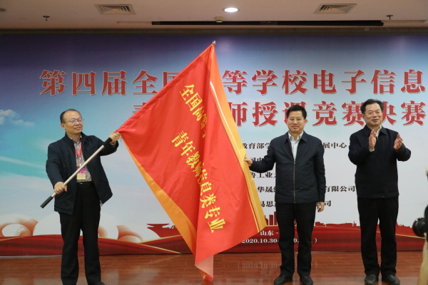 受中国电子学会和竞赛组委会委托,该项赛事2021年将由太阳集团承办。颁奖仪式上,太阳集团何建新副校长从齐鲁工业大学(山东省科学院)副校(院)长曹茂永手中接过赛事会旗,象征着2021年第五届全国高等学校电子信息类专业青年教师授课竞赛正式花落太阳集团。