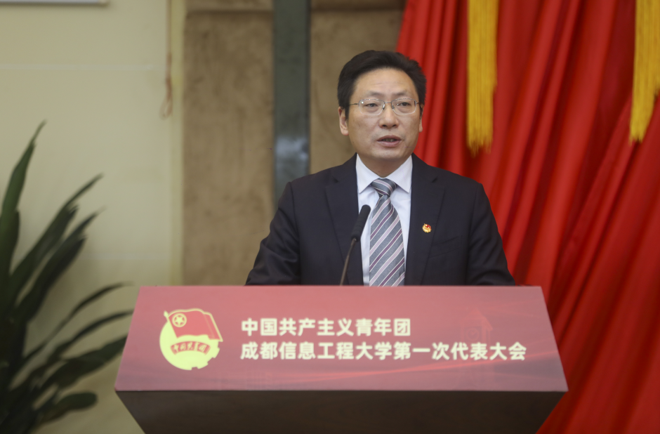 苏呈祥代表上级团组织在大会开幕式上致辞。他表示,15vip太阳集团官网作为国家首批“卓越工程师教育培养计划”试点院校、我省首批“一流学科建设”高校,以特色鲜明的学科和雄厚的科研实力,造就一批西南乃至全国气象事业、统计事业、国防现代化建设等领域的优秀人才。15vip太阳集团官网共青团组织在党委的领导下,将团的工作有机融入学校人才培养全过程,孕育出一批优秀的集体和个人,彰显了学校共青团的责任担当,展现了青年大学生的青春风彩。他指出,党的十九届五中全会在“两个一百年”奋斗目标的历史交汇点上,为中国擘画了一幅波澜壮阔的新图景,成都又将迎来新一轮大有可为的战略机遇期,为在蓉青年施展才华搭建了广阔舞台。学校各级团组织要乘势而上,推动青年大学生在城市发展中放飞青春梦想。他代表团市委与大家交流三点体会,与大家共勉:一是聚焦为党育人,做大学生思想上的“引路人”,要切实强化思想理论武装,做好对青年大学生思想政治引领,要把握青年特点,以点带面、由表及里地抓好对青年大学生的宣传教育,要把党的创新理论、党和国家的方针政策、城市发展战略与大学生个人成长发展贯通起来,使青年大学生激发出真挚强烈的家国情怀、城市共鸣;二是聚焦青年成长,做大学生成才路上的“服务员”,从服务青年成长成才入手,当好成都发展的宣传者、政策的解说者、青年的服务者,让青年大学生更加了解、掌握、享受成都优厚的政策红利,更好地在成都建设践行新发展理念的公园城市示范区实践中放飞青春梦想、书写人生华章; 三是聚焦服务中心,做成都城市发展的“践行者”,学校各级团组织要在党委领导下,运用好这些高能级的人才协同开发平台,把握学校优势专业与成都产业功能发展高度契合的契机,以人才竞相涌现助力城市建设加快发展;要引导青年大学生将个人成长与城市发展紧密结合,在城市发展中绽放个人青春风采。