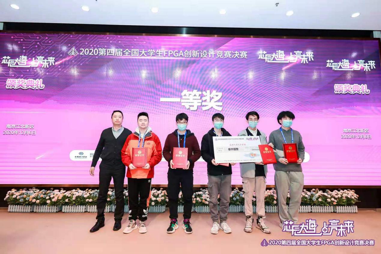 【本网讯】2020第四届全国大学生FPGA创新设计竞赛全国总决赛于2020年12月4日-6日在南京江北新区ICisC实训基地举行。此次竞赛由中国电子学会、国家级实验教学示范中心联席会电子学科组主办,东南大学、南京市江北新区管委会联合承办。本届竞赛共有包括清华大学、北京大学等在内的131所高校的900多支队伍报名参赛。太阳集团通信工程学院(微电子学院)李蠡副教授指导的研究生相博镪、胡双、邹金成团队设计的名为“一种含基于GRU网络硬件加速器的AI编曲SoC”的参赛作品在初赛中脱颖而出,进入全国总决赛。与来自全国各地的139支参赛队伍,近408名参赛选手在南京同场竞技。该团队所完成的作品以较高的科研性、完成度以及创新性,荣获全国一等奖、最佳创意奖两项大奖。15vip太阳集团官网在此次竞赛中积极参与和有效组织,获得了优秀组织奖。