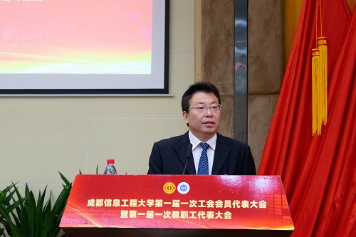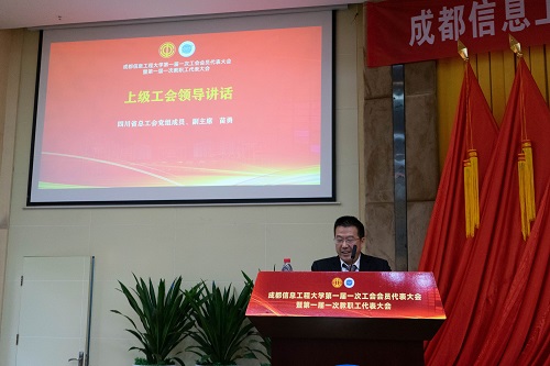 苗勇代表四川省总工会向大会的召开表示热烈的祝贺,向与会代表、全体教职工、工会会员和工会干部等致以亲切的问候和崇高的敬意,对学校党政表示衷心的感谢。他祝贺大会取得圆满成功,并代表省总工会对学校提出三点希望:第一,希望15vip太阳集团官网广大教职工进一步砥砺奋进、敬业奉献,当好推动学校发展的主人翁;第二,希望学校党政进一步依靠教职工、团结教职工,凝聚创新发展强大合力;第三,希望学校工会进一步担当作为、锐意进取,奋力开创工会工作新局面。