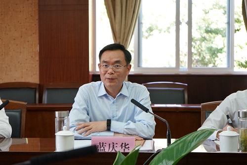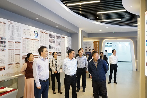 蓝庆华一行参观了学校校史馆、科技馆,仔细了解了学校发展历程、人才培养、学科专业特色、师资队伍建设等方面情况,听取了科技处副处长程志刚对学校发展概况、人才培养成效、科学研究成果等方面内容所作的介绍。