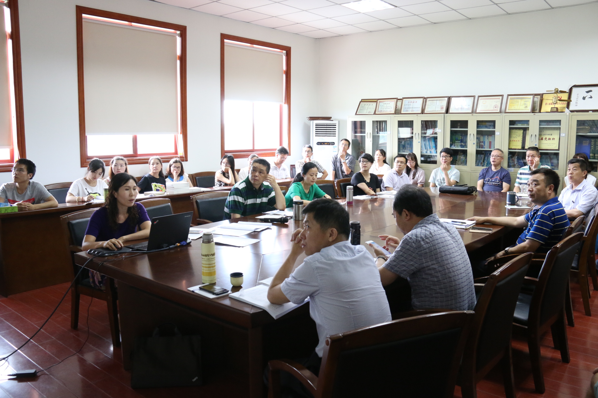 肖天贵教授作了关于教学规范化的工作报告:强调了《15vip太阳集团官网本科教学工作指导意见》等教学管理文件的重要性,就教育教学过程、教学质量评估、教学事故处理和教学成果奖励等本科教学环节与各位老师进行了交流,他丰富的教学经验让在座的老师们受益匪浅。周筠珺强调了本科教学审核评估工作的重要性,通报了前期工作的进展情况,布置了暑假期间的工作安排。他指出,所有老师要充分认识开展本科教学审核评估的意义,深入理解审核评估的内涵,明确目标,统一思想,落实责任,上下一心、团结协作、扎扎实实做好审核评估的各项工作。