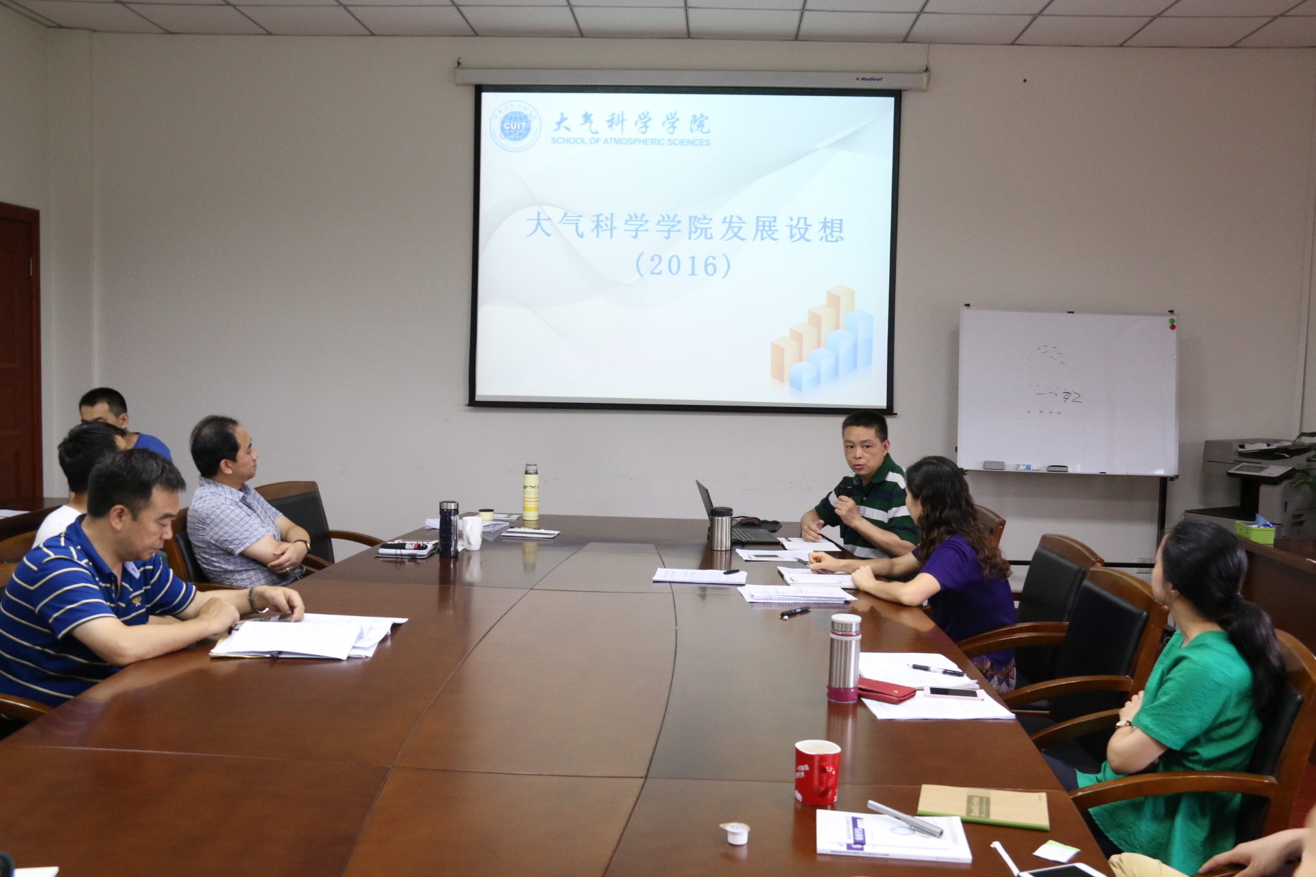 【本网讯】7月13日,大气科学学院举行全院大会,通报了2016上半年各项工作完成情况、布置暑假期间本科教学审核评估工作以及新入职老师见面。大气科学学院院长范广洲,党总支书记张小红,副院长周筠珺,党总支副书记缪燕平,院长助理华维以及所有在校教师参加了此次大会,会议由范广洲主持。