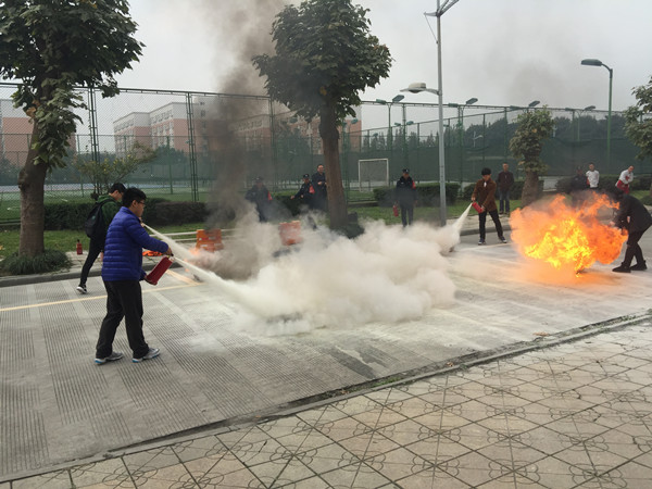 11月24日中午,各学院师生代表、后勤服务公司中心食堂员工共200余人在航空港校区体育馆前参与了现场消防演练,掀起了消防宣传月活动的高潮。 演练内容包括模拟火灾报警、应急处置预案演练、消防水带的使用以及灭火器的实际操作等,生动形象地为在场师生员工上了一堂消防安全教育课。师生积极踊跃参与到了灭火器扑救火灾演练活动,学习并掌握了初期火灾事故发生后的处置方法和常用灭火器具的使用技能。
