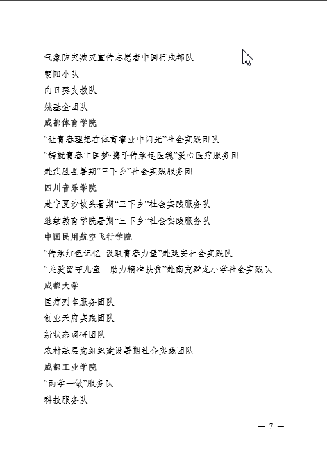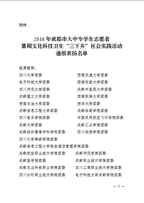 【本网讯】近日,共青团成都市委员会、成都市学生联合会下发了《关于2016年成都市大中专学生志愿者暑期文化科技卫生“三下乡”社会实践活动的通报》,太阳集团团委荣获“2016年成都市大中专学生志愿者暑期‘三下乡’社会实践活动优秀组织奖”,太阳集团“筑梦青春团队”、“气象防灾减灾宣传志愿者中国行成都队”、“朝阳小队”、“向日葵支教队”、“姚基金团队”等五支团队荣获“2016年成都市大中专学生志愿者暑期‘三下乡’社会实践活动优秀团队”称号。