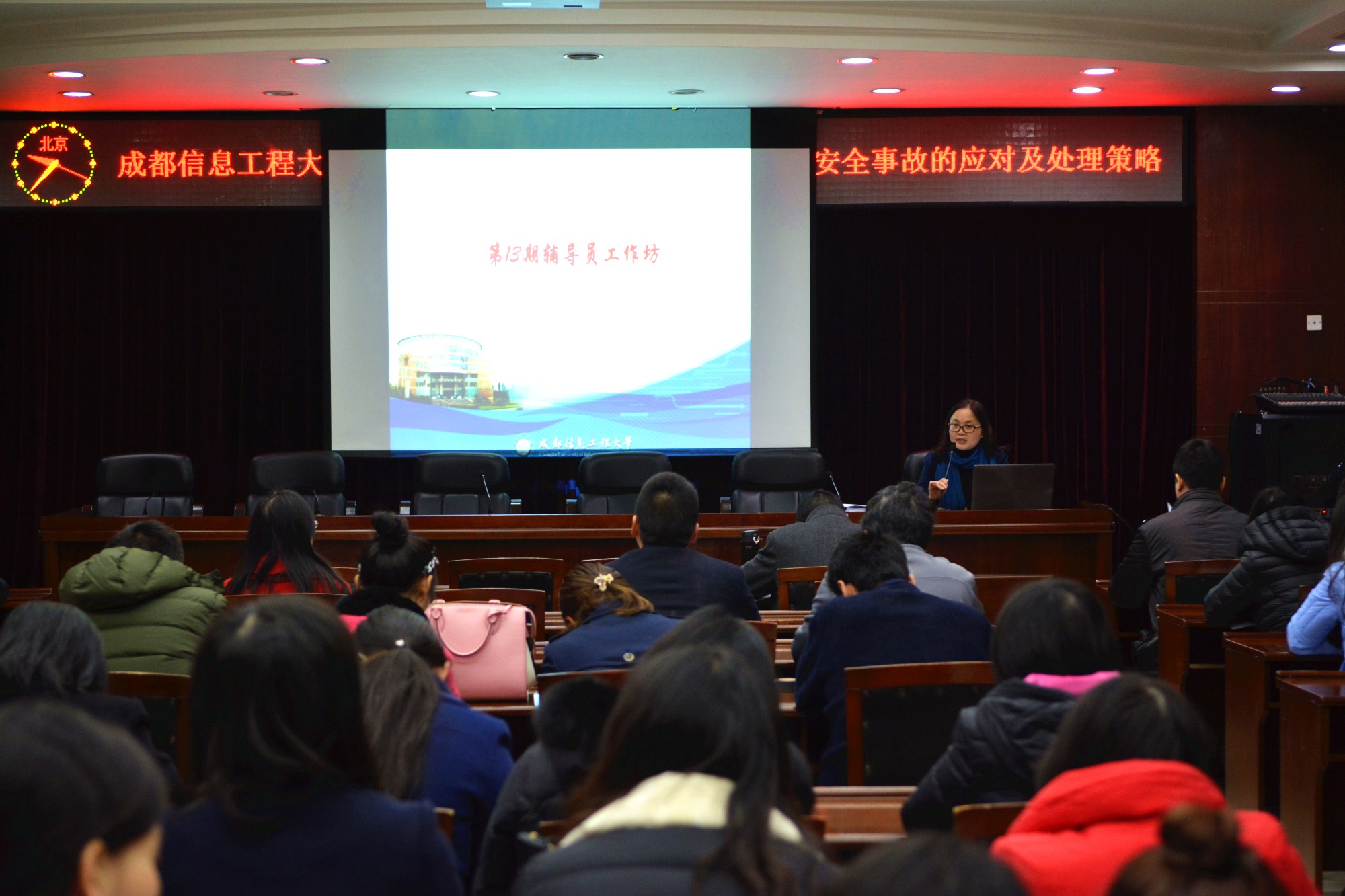 【本网讯】3月17日上午,学校在航空港校区第一会议室举行了以“学生突发安全事故的应对及处理策略”为主题的辅导员工作坊(第十三期)。工作坊由学生工作处处长戴丽红主持,副处长潘光林、陈智勇,学生工作处相关人员及全体辅导员参加了此期工作坊。