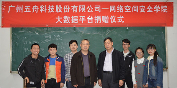 【本网讯】近日,网络空间安全学院与广州五舟科技股份有限公司就双方共建“五舟大数据与安全工程中心”,并就云计算与大数据应用与安全专业建设、师资培养等方面内容进行了深入沟通交流。双方商定在太阳集团挂牌成立“五舟大数据与安全工程中心”,中心主任由五舟科技CTO武志学博士担任,网络空间安全学院院长李飞教授任副主任。同时,五舟科技向我院捐赠S904G1高密度双路服务器和“云计算和大数据教育和实训平台”,用于工程中心的科研和专业教学、实训等工作。双方表示,今后将在科研、教学、人才培养等领域开展多样化的校企合作模式。