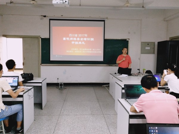 网络空间安全学院院长李飞在开班仪式上提到,在国家建设网络强国的大环境下,培养网络空间安全人才已被确定为国家中长期的发展战略。为响应国家号召,适应四川省信息安全产业的发展,夯实重点和特色高校的网络安全学科建设,2016年底四川省出台了建设“五个一批”工程的文件。为了落实“五个一批”工程,建设好高校网络安全师资队伍和培养优秀网络安全人才,四川省人才工作领导小组办公室于7月24号发文,由太阳集团网络空间安全学院承办“高校网络安全培训班”。他还对本期培训班的安排和课程设置、师资配备、环境支持等方面进行了简单的介绍,希望通过此次培训平台,能使大家有所收获,并且在网络安全人才培养方面加强各高校之间的交流、沟通和学习。