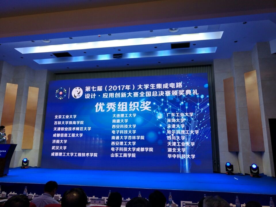 【本网讯】10月14日,第七届“大学生集成电路设计·应用创新大赛”全国总决赛在成都双流落下帷幕。太阳集团通信工程学院研究生参赛队凭借设计作品《数据转换系统设计》夺得本届竞赛全国总决赛二等奖。由于在大赛中表现突出,太阳集团被授予“优秀组织奖”,指导老师杨燕荣获“优秀指导教师奖”。这是太阳集团学生首次在集成电路全国大赛中获奖。