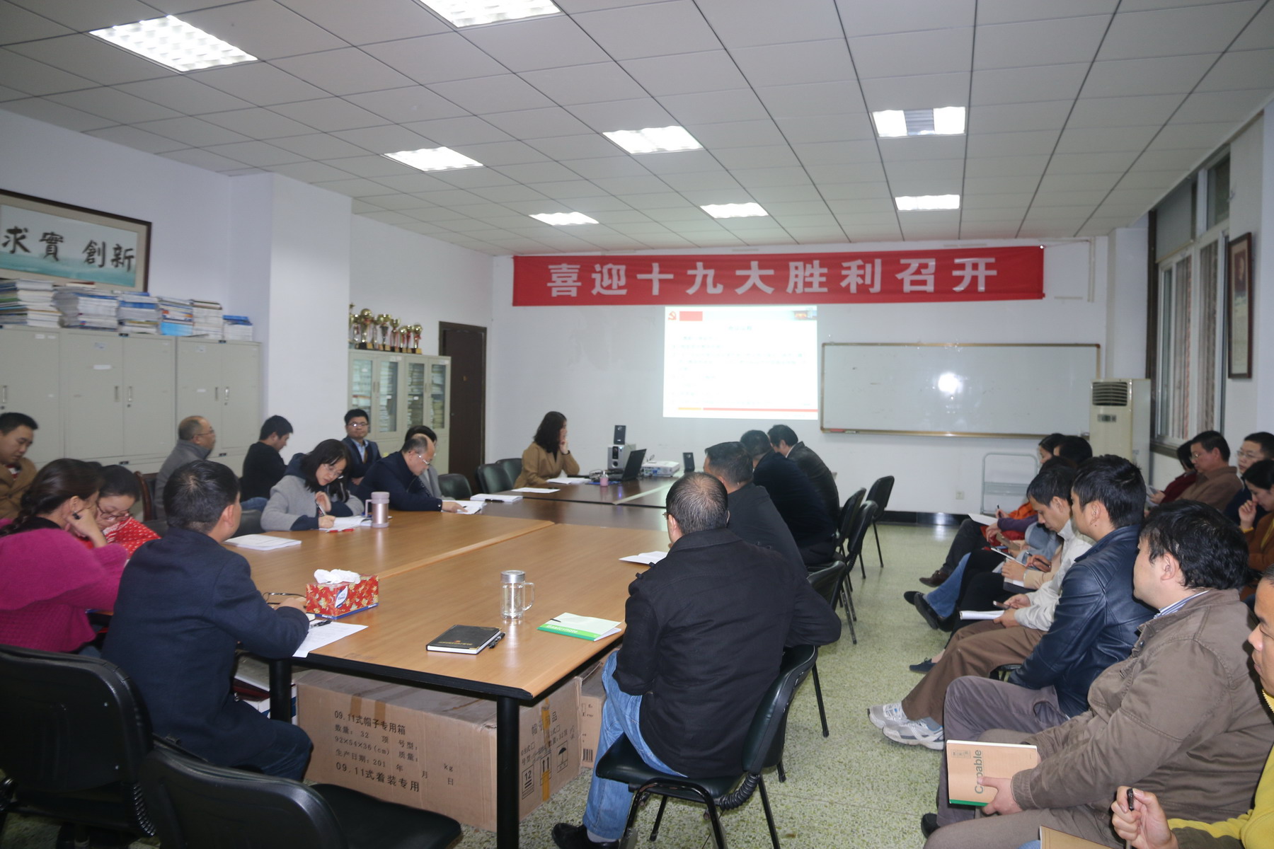 通过学习,大家纷纷表示,十九大的召开,催人奋进,鼓舞人心。让我们对党和国家的未来更加充满信心。作为一名高校教师,将不忘初心,牢记使命,立足岗位,扎实工作,以高度的责任感和饱满的热情努力工作,为党和国家的教育事业以及学校发展作出应有的贡献。