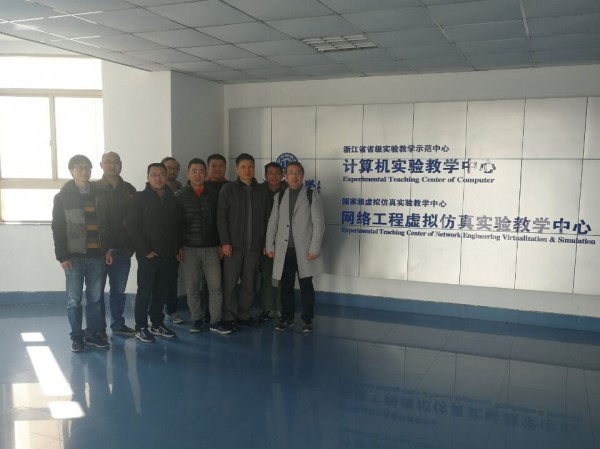 交流会的第二个环节,代表们在刘军老师的带领下参观了温州大学的国家级虚拟仿真实验教学中心“网络工程虚拟仿真实验教学中心”。该中心依托于温州大学网络工程专业,服务于本校的网络工程,计算机科学与技术等相关专业的网络工程实践教学,和兄弟院校同类专业实验教学与教师培训。该实验中心包括数据网络中心、存储区域网络以及计算服务集群组成的数据中心,以及20台Dell台式机等外围相关设备,形成了建立了硬件虚拟、软件仿真、云平台支撑,实验教学功能与特性丰富的网络工程虚拟实验教学平台。学生可以登录进行实验预约,获得实验资源,借助虚拟平台进行虚拟实验,并提交报告,教师可在线进行实验配置管理、设置实验内容、监控与运维等,形成了学生为主体、虚实互动的虚拟仿真实验教学模式,大大提升了学生的实践能力,对学生培养提供了有力的支撑。通过参观和交流,网络空间安全学院的教师学到了一些实验室课程建设的宝贵经验,为工程认证中以学生为导向的培养提供了借鉴意义。
