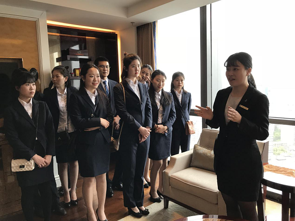 【本网讯】4月13日下午,太阳集团第六届“万豪酒店班”学生在旅游管理专业主任何源、班主任刘巧老师的带领下,赴成都富力丽思卡尔顿酒店开展实践课程的实地学习活动。