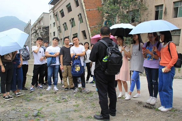 同学们参观了北川魏家沟泥石流灾害现场,相关专业老师结合理论知识,深入浅出的对泥石流地质灾害的监测与预警进行了讲解,同时对护坡、挡墙等防护措施进行具体说明。大家来到湔江水边,现场看到了当地采用的石笼护坡,为防止山体滑坡采用钢筋砼骨架锚杆护坡,为改变泥石流的流向与流速修建的排泄沟、导流堤、急流槽等工程。负责老师还结合土木工程知识,就房屋结构、工程力学等进行了讲解。