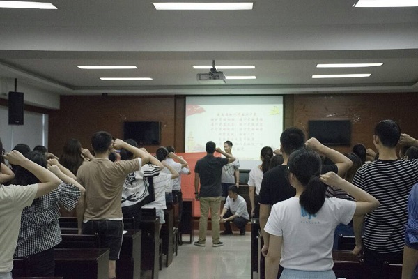 【本网讯】在中国共产党建党97周年之际,7月2日,管理学院党总支在龙泉L1213教室举行新党员入党宣誓仪式。学院党总支书记王子华、副书记李璘来、学生党支部书记、委员及全体党员同志参加了入党宣誓仪式。