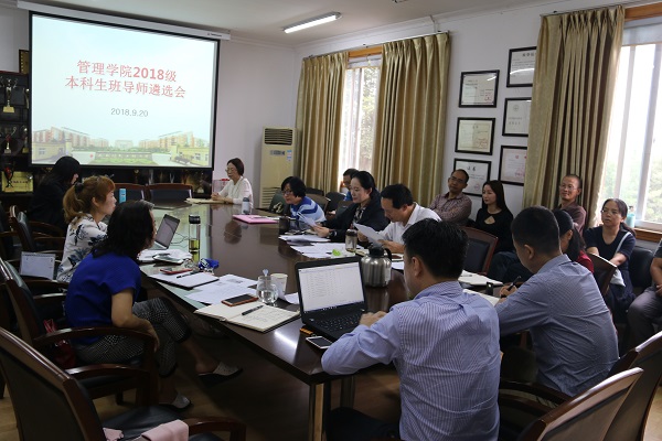 【本网讯】为了深入贯彻落实《中共15vip太阳集团官网委员会关于加强和改进新形势下高校思想政治工作的实施意见》和《15vip太阳集团官网本科生班导师制实施办法》等文件精神,进一步强化班导师队伍建设,整体提升班导师队伍工作能力和水平,促进和完善班导师工作制度,调动班导师工作的主动性、积极性和创造性,9月20日上午,管理学院召开了班导师工作会议,评选2017-2018学年本科生“优秀班导师”,审议确定2018级新生班导师。学院党总支书记王子华、院长黄萍及班导师工作领导小组全体成员、全体辅导员参加了会议。