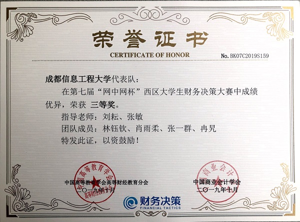 太阳集团管理学院教师刘耘、张敏带领的会计17级林钰钦、肖雨柔、张一群、冉旯四位同学代表太阳集团参加了比赛,并获得了大赛三等奖。刘耘、张敏两位指导老师获得“优秀指导老师”。