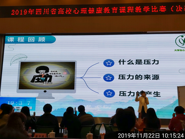 四川省高校心理健康教育课程教学比赛是为加强和改进我省高校心理健康教育工作,提升课程质量,推进心理健康教育教师队伍建设而举办的全省心理健康教育课程教学最高规格的比赛,迄今已举办五届。学校党委学生工作部十分重视该项比赛,认真组织相关老师报名,并最终推选万娟参赛。备赛过程中,学工部和软件工程学院党委又专门邀请校内专家对万娟进行指导,为其参赛提供了大力支持和帮助。