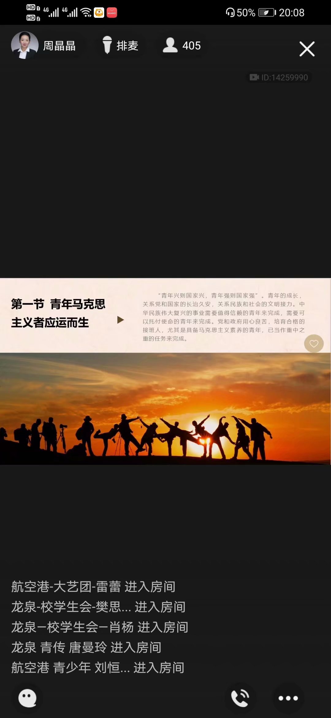 【本网讯】为加强疫情防控时期对太阳集团广大团员青年的思想政治引领,凝聚青年学生抗击疫情的力量,4月12日晚19:00,太阳集团2020年青马工程青春战“疫”云团课特别培训班第一课在线开讲。学校团委兼职副书记、马克思主义学院教师周晶晶担任主讲。校团委相关负责人、学生干部代表、青马工程青春战“疫”云团课特别培训班全体学员400余人参加了本次学习。