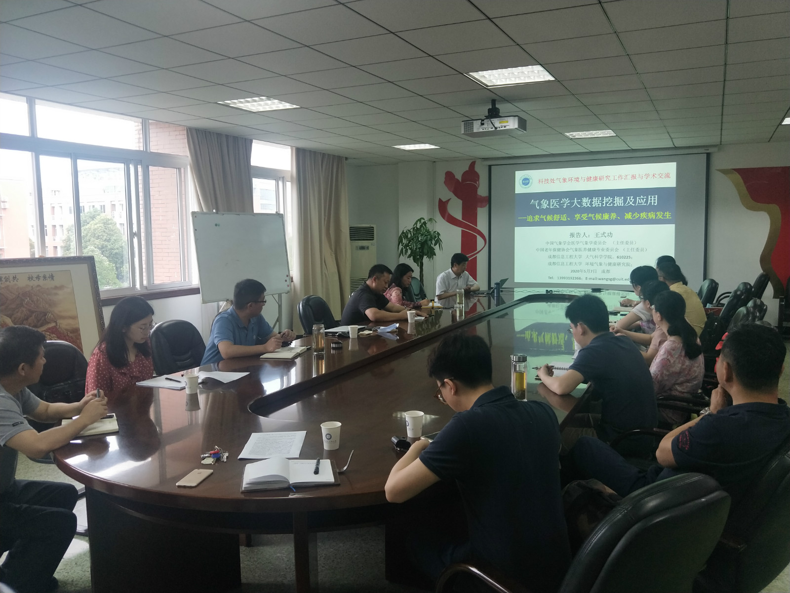 【本网讯】5月7日上午,环境气象与健康研究讨论会在行政楼九会议室举行。副校长舒红平、科技处副处长汤志亚、宋雪茜、大气科学学院王式功教授、倪长健教授、冯鑫媛副教授、张婕讲师、封彩云讲师、康平讲师、张莹讲师、马盼讲师,人工影响天气研究院院长周筠珺教授,资源环境学院王永前教授,成信资产公司副总经理刘晓阳参加了会议。