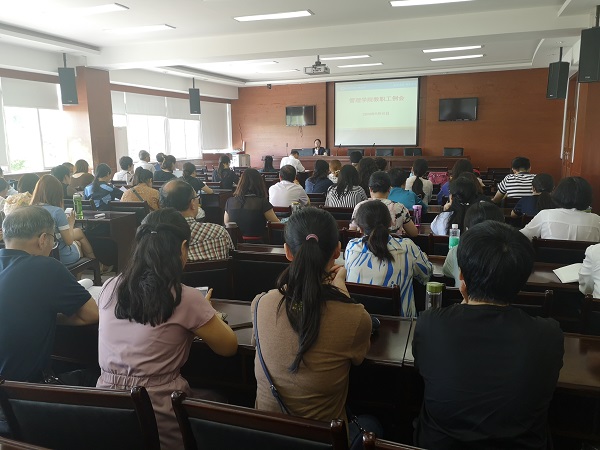 【本网讯】9月10日上午,管理学院在龙泉校区二会议室召开全院教师大会,部署新学期工作。管理学院全体教师参加了会议。会议由院长黄萍主持。