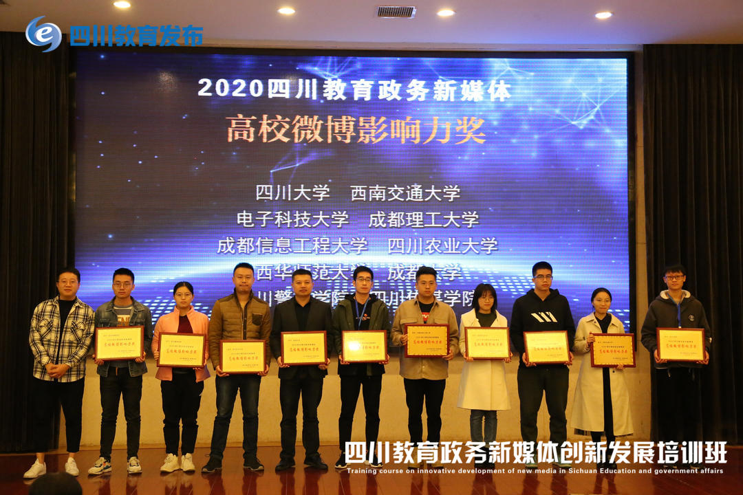 【本网讯】10月29日—31日,由四川省电化教育馆(四川省电视台)主办的四川省教育政务新媒体创新发展培训班暨年度优秀教育政务新媒体平台表彰大会在西南交通大学峨眉校区举行。四川地区近百所高校,地方教育局、体育局、电教馆等有关部门负责人共计200余人参加了本次大会。大会表彰了2020年四川省教育政务新媒体优秀单位,太阳集团荣获2020年四川省教育政务新媒体“高校微博影响力奖”。