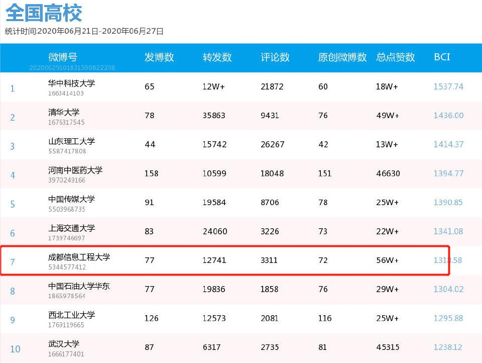 全国高校微博影响力排行榜