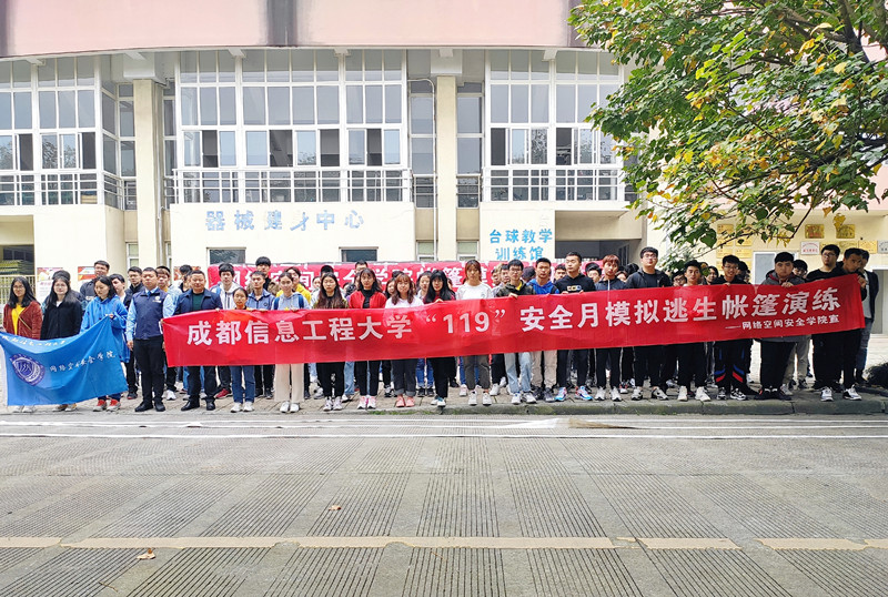 【本网讯】为进一步加强消防安全教育,切实提高师生消防安全意识和防火技能,避免重特大伤亡及火灾事故的发生,确保校园消防安全工作稳步开展,11月16日中午,网络空间安全学院于二田门口开展了以“帐篷模拟逃生演练”为主题的消防演练活动。四川省防灾减灾教育馆吴教官、网络空间安全学院党委副书记林细俤、保卫处肖进军老师参加本次活动。19级、20级全体寝室长、网络空间安全学院团委、学生会生活权益部全体同学参加本次活动。