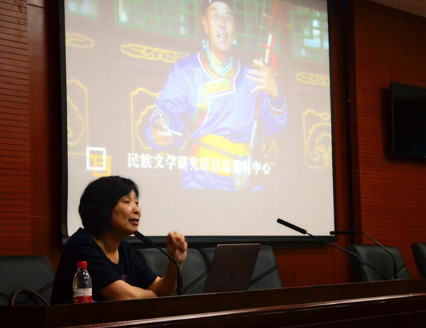 汤教授以自身经历为线,具体地展示了所研究的侗族大歌、藏族史诗《格萨尔王》、蒙古族史诗《江格尔》,以及新疆柯尔克孜族史诗《玛纳斯》的深切感受。她通过自己在调查维吾尔族“恰卜恰科”等中的趣事,为师生们展现了一幅靓丽的我国多民族文明画卷。讲座中,她深入浅出、举例丰富,运用影音和图像资料,播放了侗族、藏族和柯尔克孜族“歌诗”的场景,分享了亲身调查和采访说唱诗人的经历。本次讲座内容从中国大陆本土延伸至我国台湾少数民族歌手的传统演唱,以及世界其它民族文化中的信仰和宗教,如印尼巴厘岛的印度教信仰、澳大利亚土著的对神石“肚脐”的命名和日本大和民族的“崇神”文化等。