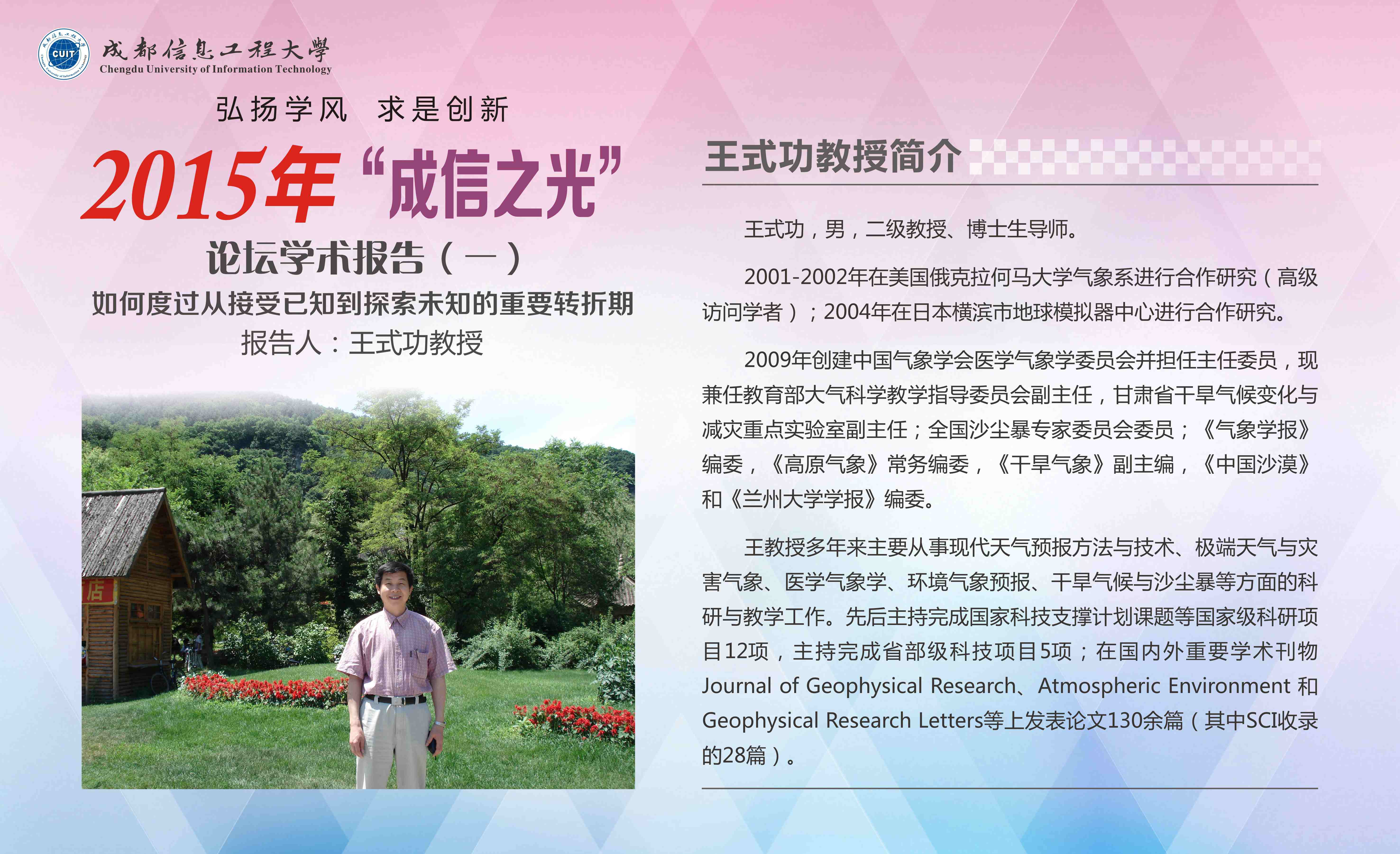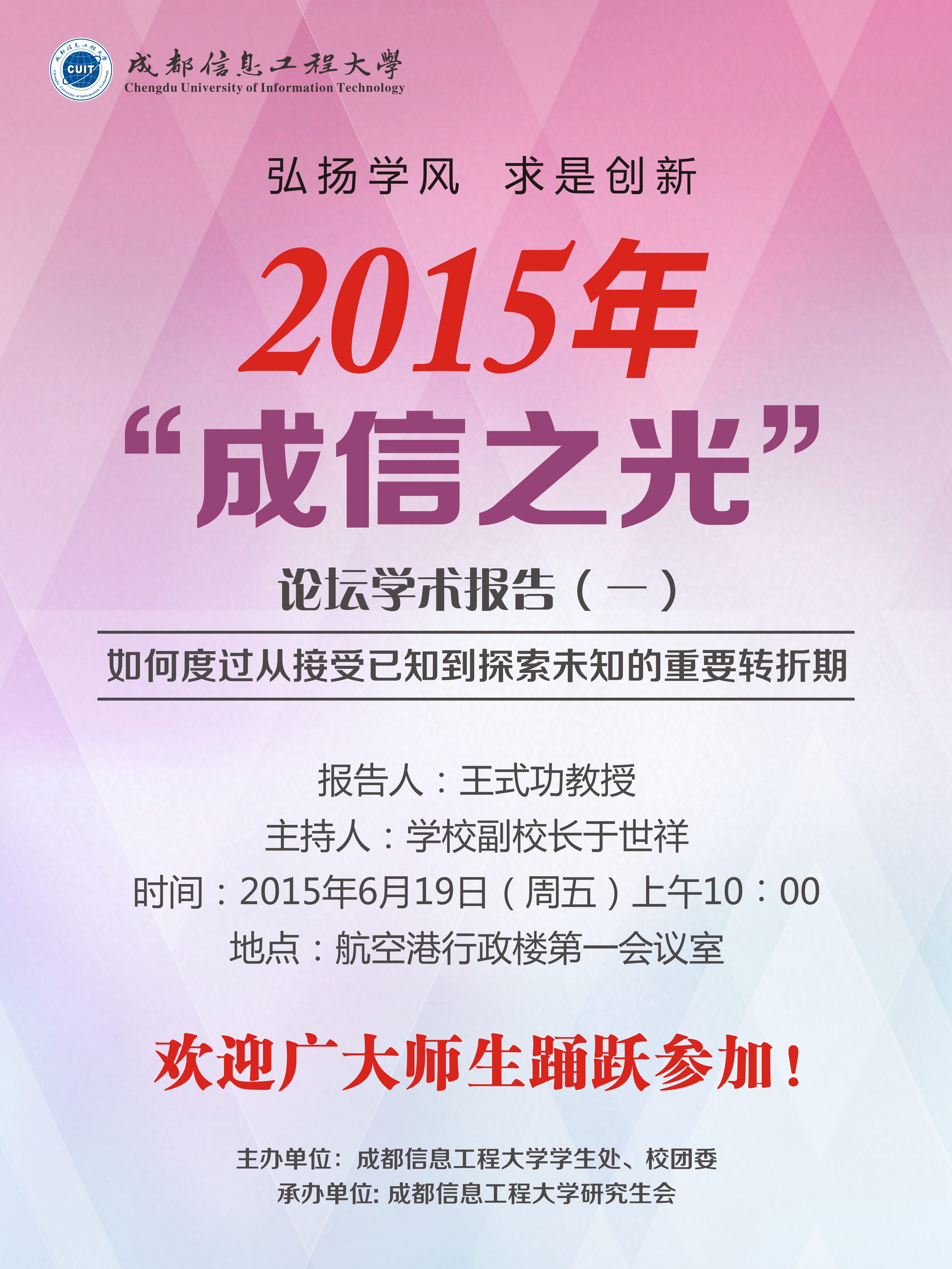 【学术预告】2015年“成信之光”论坛学术报告(一)-如何度过从接受已知到探索未知的重要转折期
