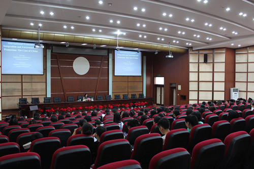 曾卡教授以中国为例,以其独特的分析视角和见解为师生们讲解了“贸易与投资对中国环境的影响”,从世贸组织的贸易偏见、中国在出口中的消费优势、中国各省的排污量、外贸对中国沿海地区的投资以及外资对中国环境的影响几个方面讲解了”加尼福尼亚效应“、”技术效应“、”结构效应”,总结出全球经济的加入对中国环境有一种正面影响,使我国环境保护技术得到提高。另外,曾卡教授地道流利的英语水平也让同学们深深折服。