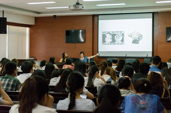 【本网讯】6月21日下午,美国新罕布什尔大学MONICA CHIU教授到龙泉校区一教二会议室,为文化艺术学院师生带来了一场精彩的讲座----“漫画家杨谨伦笔下的首位华裔超级英雄---漫画体叙事游记”( Gene Yang’s Chinese American Shadow Hero, the first Chinese American superhero)。学院视觉传达设计、汉语国际教育专业本科生和部分教师100余人聆听了讲座。讲座由文化艺术学院廖思湄教授主持。