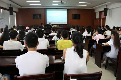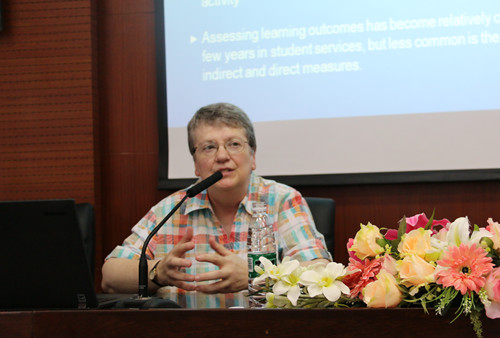 【本网讯】6月24日上午,美国新罕布什尔大学教授系列讲座之“Innovation in Student Leadership Programs and Measuring Their Educational Outcomes”在龙泉校区1213教室举行,讲座由美国新罕布什尔大学学生事务处处长Mary Anne Lustgraaf主讲,太阳集团管理学院80名师生聆听了此次讲座。讲座由管理学院副院长李贵卿主持。