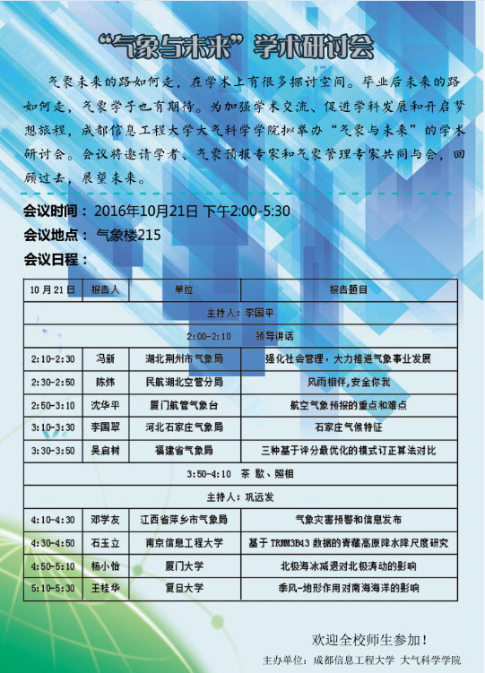 下一条:大气科学学院召开第十期研究生学术论坛