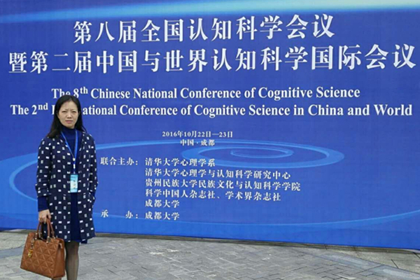 【本网讯】10月22-23日,文化艺术学院徐砺教授参加了在成都大学召开的“第八届全国认知科学会议暨第二届中国与世界认知科学国际会议”。本次年会由清华大学心理系、清华大学心理学与认知科学研究中心、贵州民族大学民族文化与认知科学学院、科学中国人杂志社、学界杂志社主办,成都大学承办。