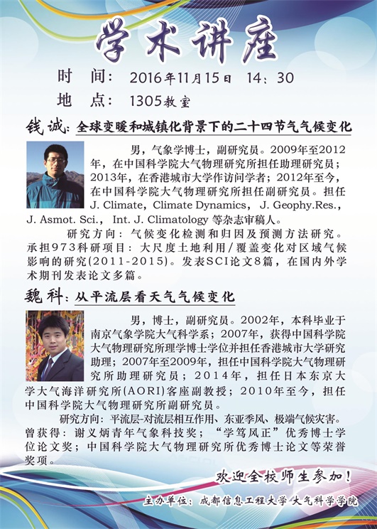 下一条:大气科学学院承办第33届中国气象学年会“气候环境变化与人体健康”分会场