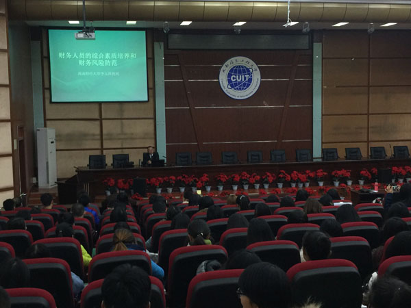 【本网讯】11月25日下午,由学校科技处主办,商学院承办的“财务人员的综合素质培养和财务风险防范”专题讲座在龙泉校区学术报告厅举行,讲座由西南财经大学李玉周教授主讲,商学院副院长李来儿主持,商学院院长曹邦英、院长助理刘名旭以及相关专业教师和同学参加了本次讲座。