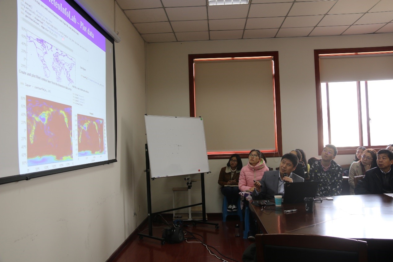 王亚强从目前国外各种气象软件(GIS、NCL、Grads、Python等)在我国的应用现状引入,指出我们应该结合实际,大力发展综合性国产软件,而不依赖于国外产品。随后,王亚强从MeteoInfo的软件简介、在气候及环境领域的应用现状两个方面向大家作了详细介绍,并结合实例图形系统讲述该软件在计算、绘图过程中的使用方法和要点。