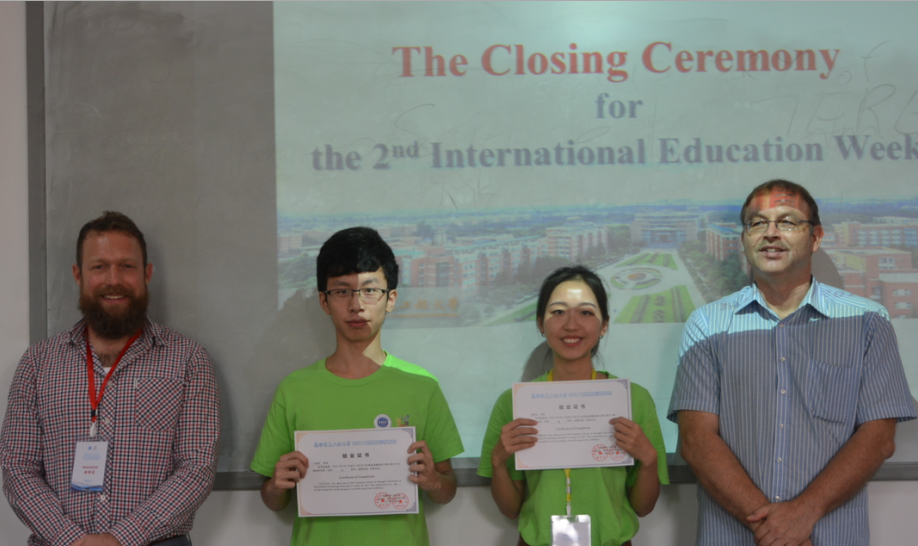 盖秋艳对两位外籍教授Martin Pusch和Markus Koeck的辛勤劳动表示感谢。她说,国际周活动不仅为扩大了同学们的国际视野,提高了专业学习的国际化水平,更为同学们搭建了各方面素质提升的平台。她也代表学校相关部门感谢资环学院相关专业教师国际周全程的跟进与答疑,感谢相关负责教师的组织工作,同时祝愿各位教师和同学度过一个愉快的暑假。