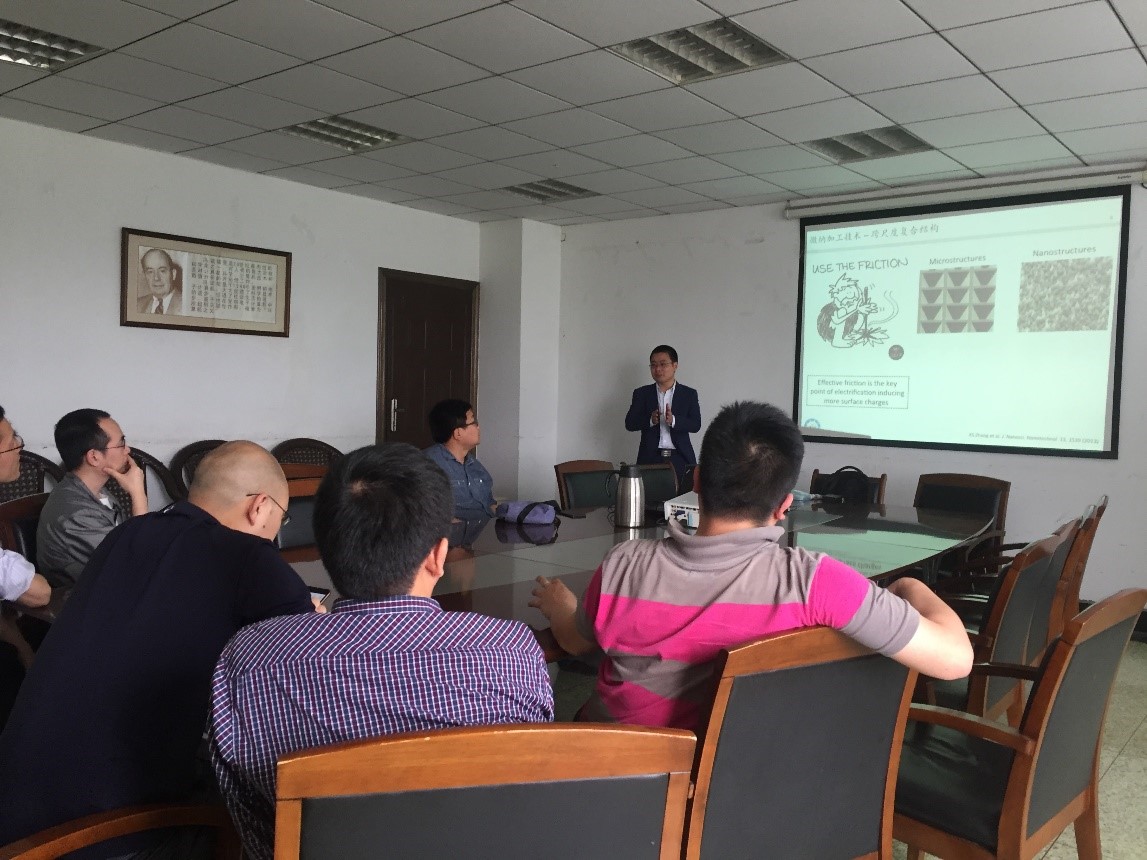 张晓升与现场师生们就纳米制造及微能源采集技术这一新兴前沿学科的发展和应用趋势进行了探讨。